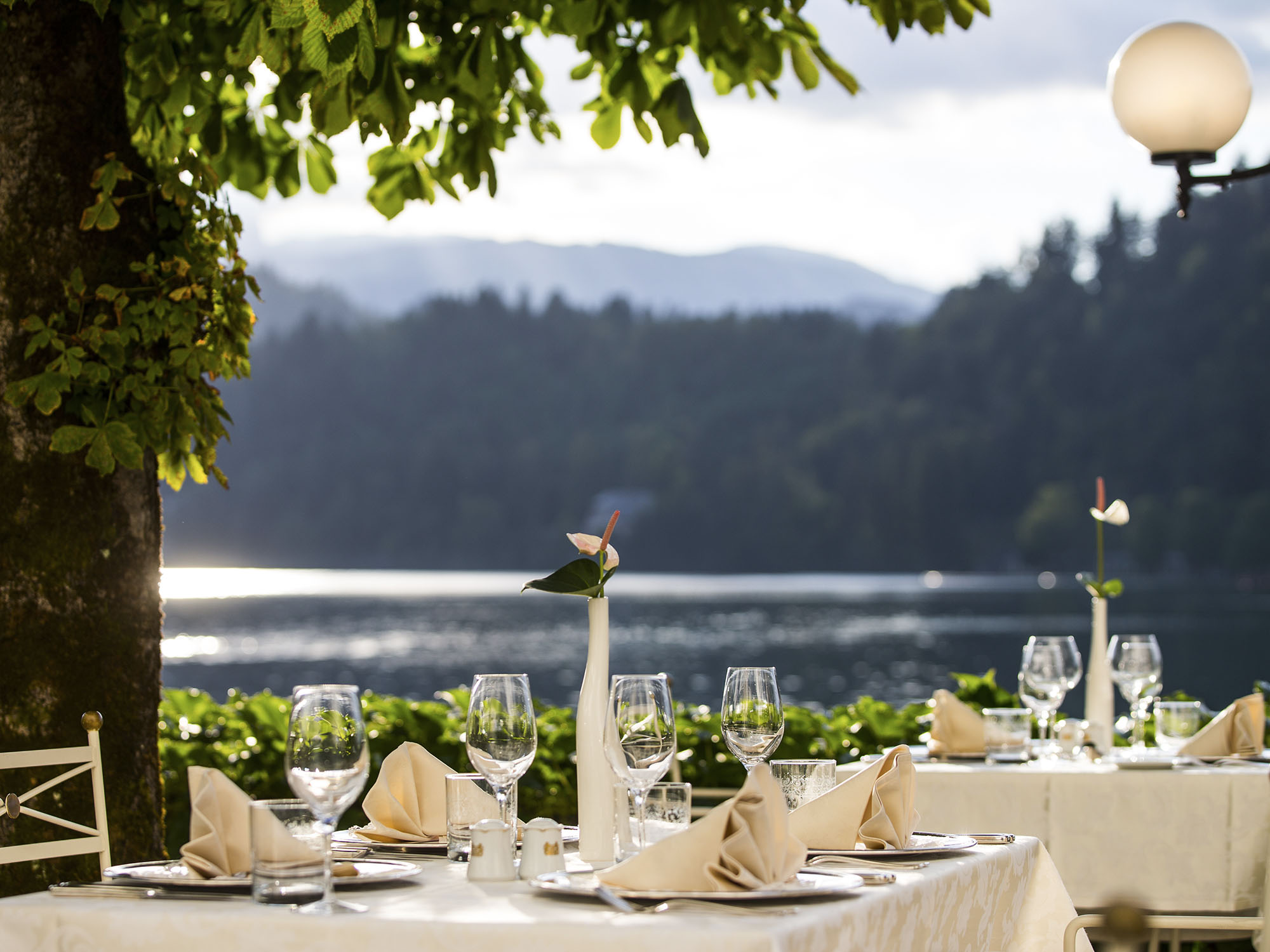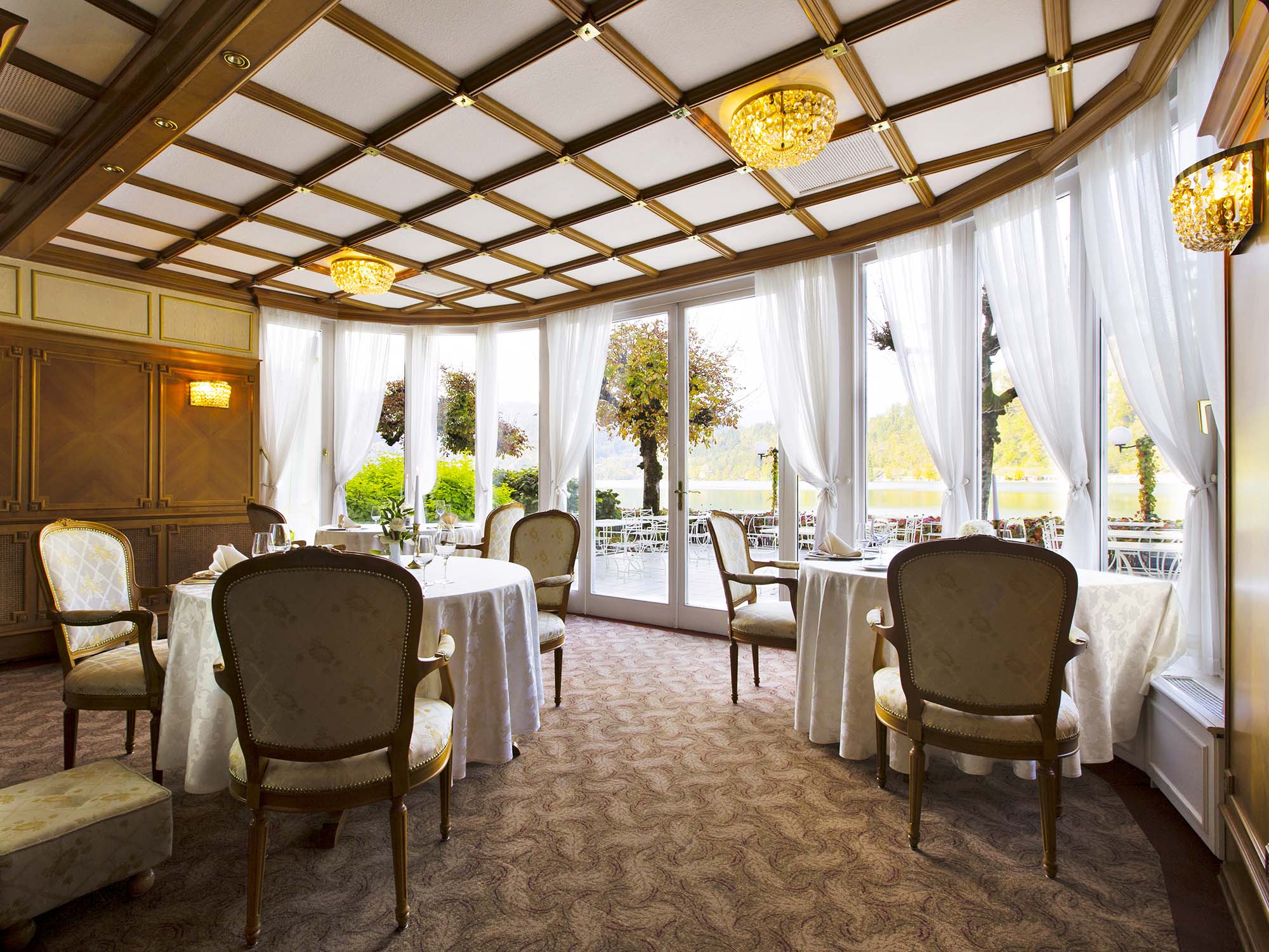 The perfect film scene created by the luxurious interior and a breathtaking view of the surface of Lake Bled is only missing actors. In addition to kings, presidents, divas, Nobel prize winners and artists, actors frequently dined here.