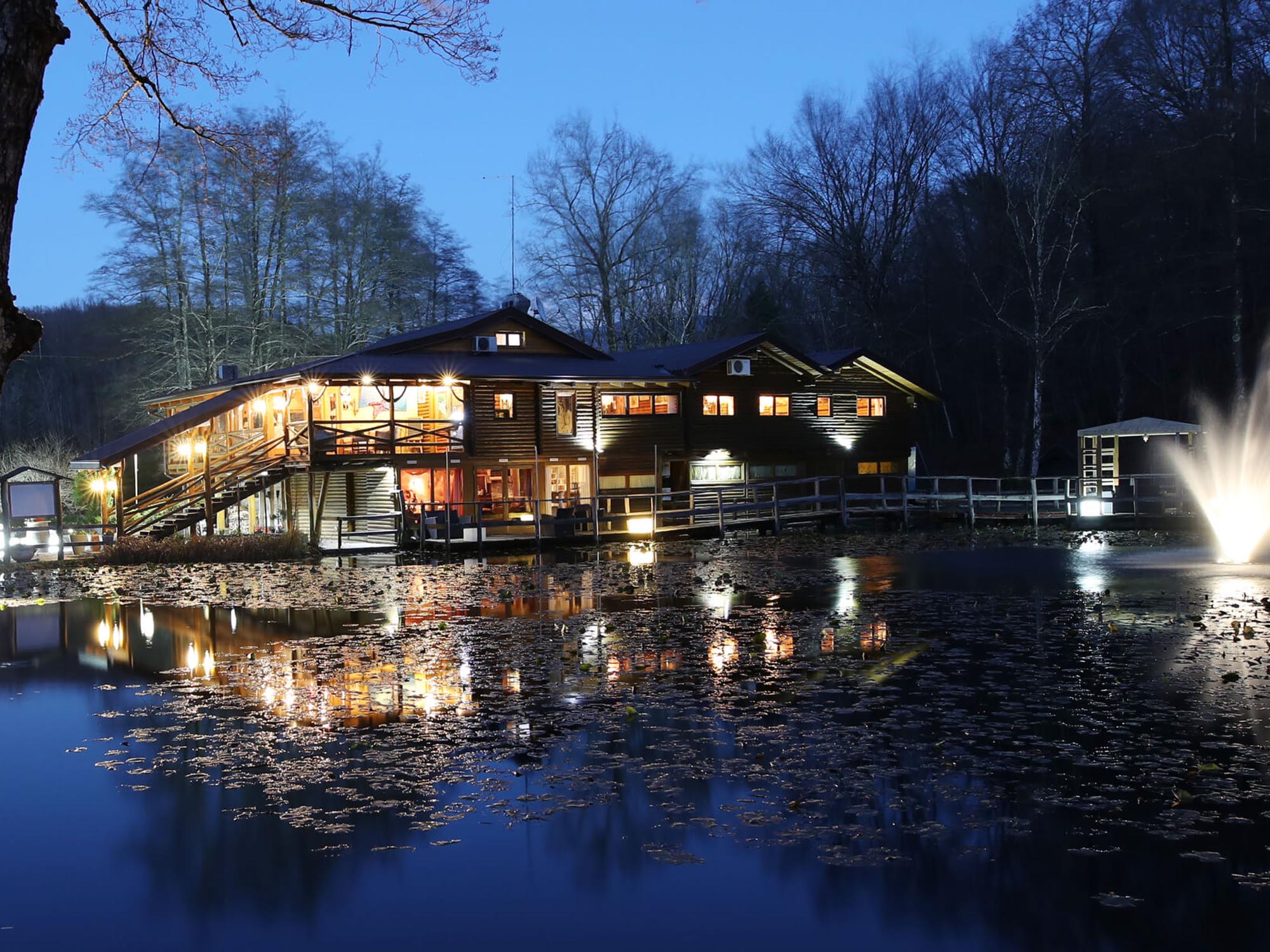 Imagine an adorable wooden villa surrounded with lush greenery and a lake. Moonshine and dimmed lights can be seen on the water. The interior is impressive, yet tastefully decorated. Romantic lighting, works of art, candles, elegant tables and warmth of the wood create a fairly-tale atmosphere and set the scene for what is to come. It’s pleasant on the glass terrace all year round since winters are warmer in the Goriško region than elsewhere.