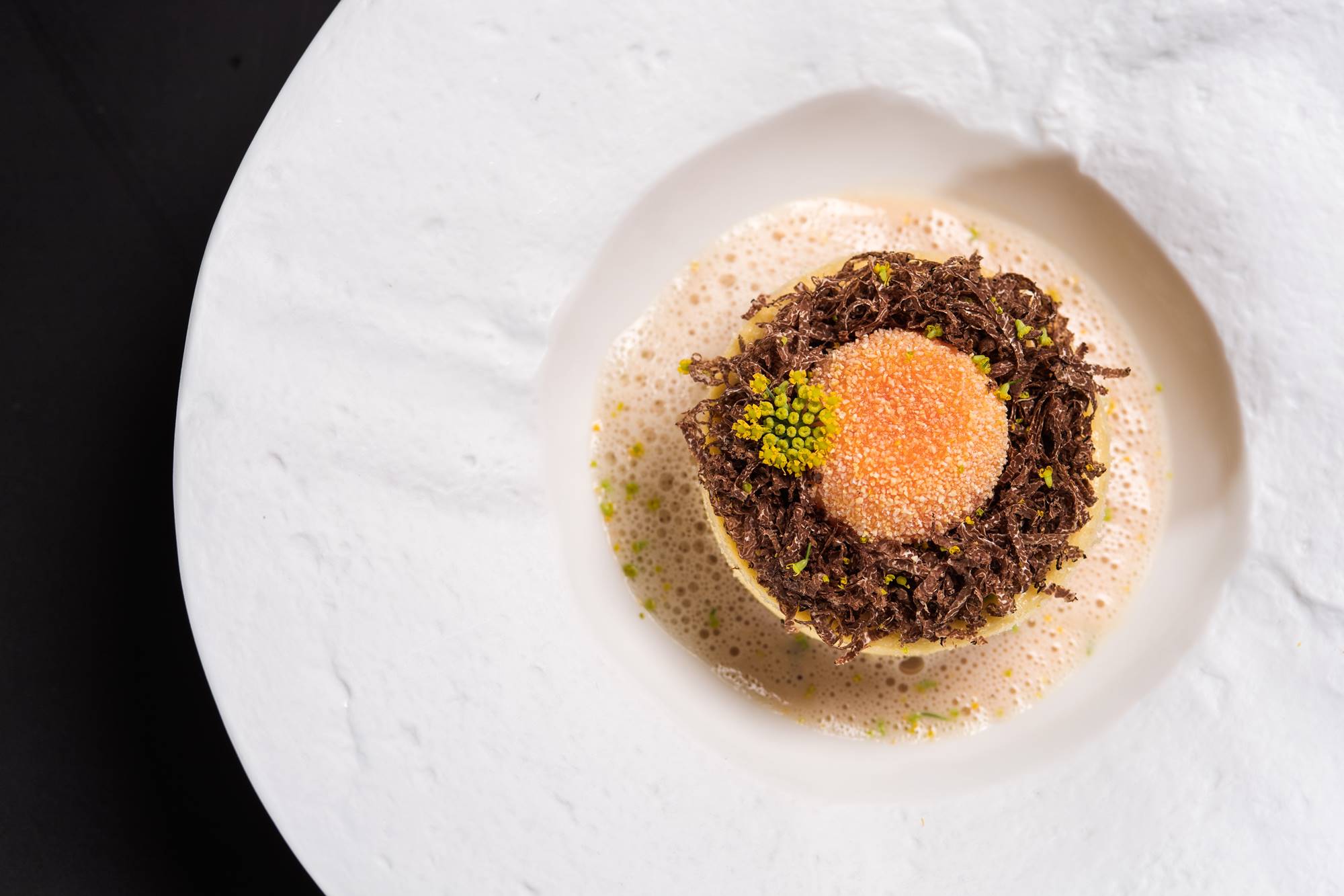 Later in the day, you are invited to enjoy potato dumplings with glazed beets and toasted bacon, served with young cheese and walnuts. Or treat yourself to a slow-cooked ox shank in its own juices and an emulsion of Isabella, a native grape variety, with butternut squash purée. Or maybe you’d rather enjoy a mini octopus with black lentils, garden vegetables and a spinach emulsion.