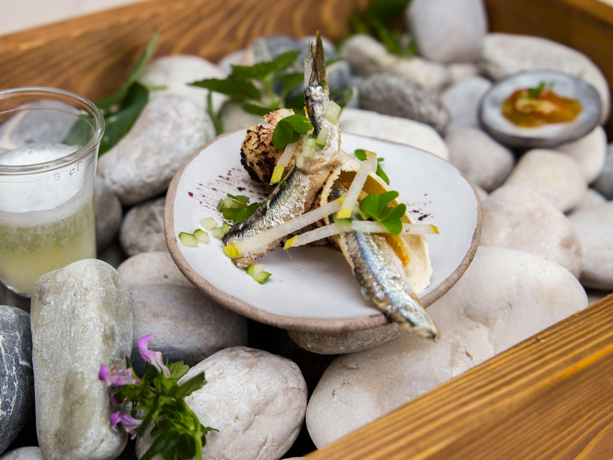 He is familiar with modern cooking approaches which he likes to draw on. Which does not mean that he is drifting away from local ingredients and home-made food. Try one of his spirits which are his passion and joy.
